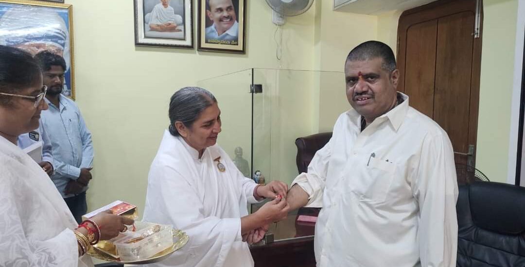 ప్రతీ సంవత్సరం లాగే ఈ సంవత్సరం కూడా విశాఖ జిల్లా బ్రహ్మ కుమారి ఆశ్రమం సోదరీమణులు మాజీ మంత్రి భీమిలి నియోజకవర్గం శాసనసభ్యులు అయిన గౌ ముత్తంశెట్టి శ్రీనివాసరావు గారి కి విశాఖ లో ఉన్న ఆయన క్యాంప్ కార్యాలయంలో ఆయనను మర్యాద పూర్వకంగా కలిసి రాఖీ కట్టడం జరిగింది.