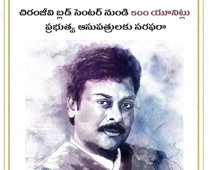 చిరంజీవి బ్లడ్ సెంటర్ నుండి 500 యూనిట్లు ప్రభుత్వ ఆసుపత్రులకు సరఫరా…