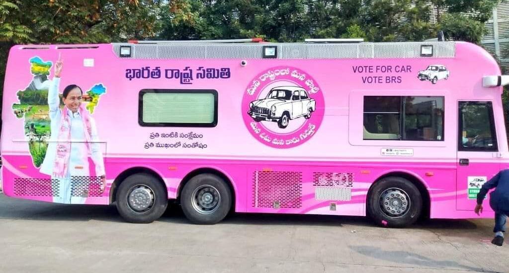 భారత రాష్ట్ర సమితి ప్రచారరథం సిద్దం ముఖ్యమంత్రి, భారత రాష్ట్ర సమితి అధినేత కేసీఆర్ ఎన్నికల ప్రచార రథం సిద్దం.అధినేత చిత్రం, కారు గుర్తు, భారతదేశ పటం, గులాబీ రంగు గుభాళింపుతో సర్వాంగ సుందరంగా ముస్తాబైన ప్రచార రథం.ఇవ్వాళ్టి నుంచి మొదలయ్యే కేసీఆర్ ప్రచార పర్వంలో తెలంగాణా రోడ్లపై పరుగులు పెట్టనున్న ప్రచార రథంఇవాళ హుస్నాబాదుకు ప్రచార రథం.