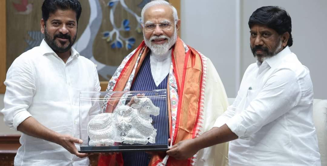 తెలంగాణ ముఖ్యమంత్రి శ్రీ రేవంత్ రెడ్డి గారు దేశ ప్రధానమంత్రి శ్రీ నరేంద్ర మోడీ గారిని కలిశారు. ఉప ముఖ్యమంత్రి శ్రీ భట్టి విక్రమార్క గారితో కలిసి ప్రధానమంత్రిని కలుసుకున్నారు. ఈ సందర్భంగా రాష్ట్రానికి సంబంధించిన పలు పెండింగ్ అంశాలను ప్రస్తావించి సత్వరం పరిష్కరించాలని విన్నవించారు.