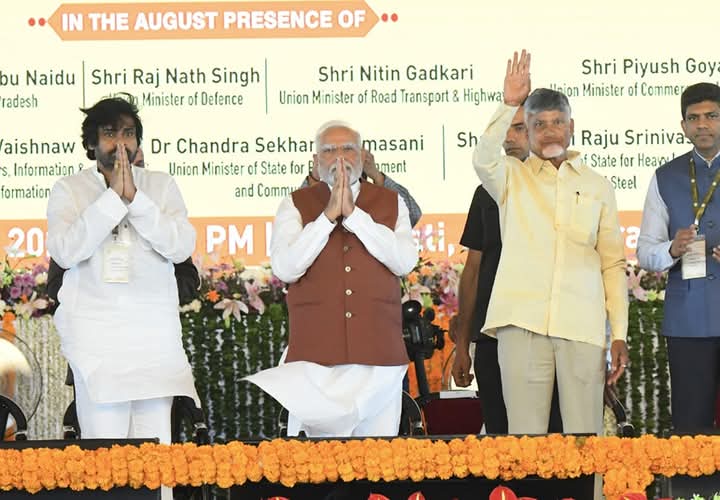 పెహల్గాం ఉగ్రదాడి లాంటి క్లిష్ట పరిస్థితుల్లోనూ రాజధాని పున: నిర్మాణ పనులు ప్రారంభించేందుకు సమయం ఇచ్చిన ప్రధాన మంత్రి శ్రీ నరేంద్ర మోదీ గారికి ధన్యవాదాలు తెలిపారు. శుక్రవారం సాయంత్రం అమరావతి పనుల పున: ప్రారంభోత్సవ సభలో గౌరవ గవర్నర్ జస్టిస్ అబ్దుల్ నజీర్ గారు, గౌరవ ముఖ్యమంత్రి శ్రీ చంద్రబాబు నాయుడు గారు, కేంద్ర, రాష్ట్ర మంత్రులతో కలసి పాల్గొన్నారు.